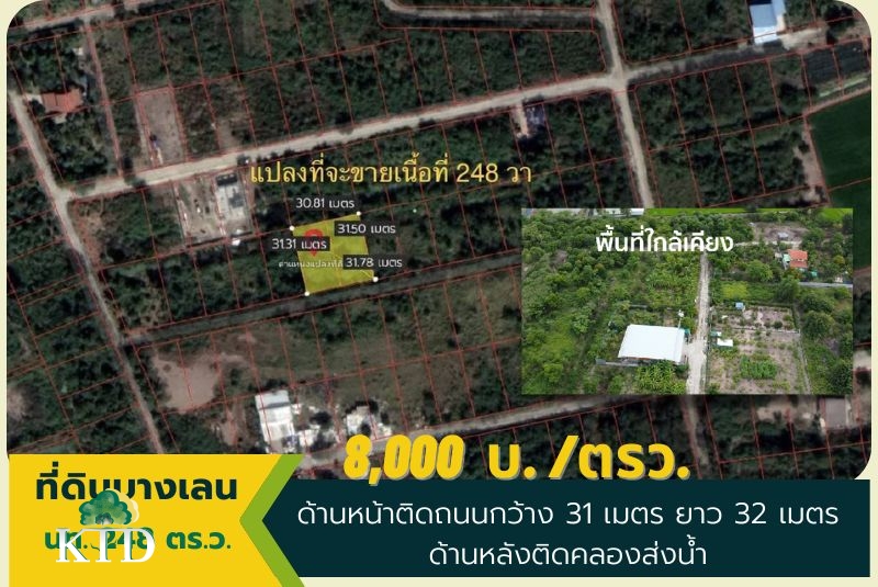 ขายที่ดินเปล่า นท. 248 ตร.ว. 2 โฉนด ถมแล้ว เพียง 8 นาทีถึง ตลาด,โลตัส บางเลน นครปฐม เป็นที่ดินจัดสรรเก่า