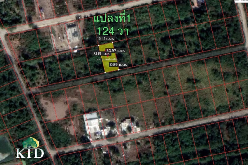 ด้านหลังติดคลองส่งน้ำ ด้านหน้าติดถนนคอนกรีตกว้าง 31 เมตร ยาว32 เมตร